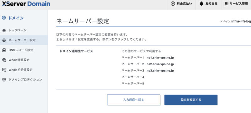 手順4 独自ドメイン側でネームサーバーを変更